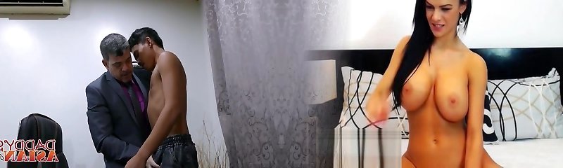 Jap stud Jude satisfies his attractive boss in a office