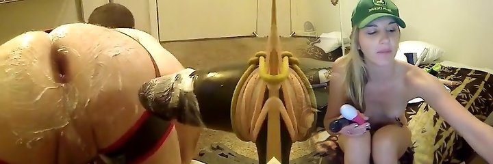 Anal Fisting with giant dildo finish